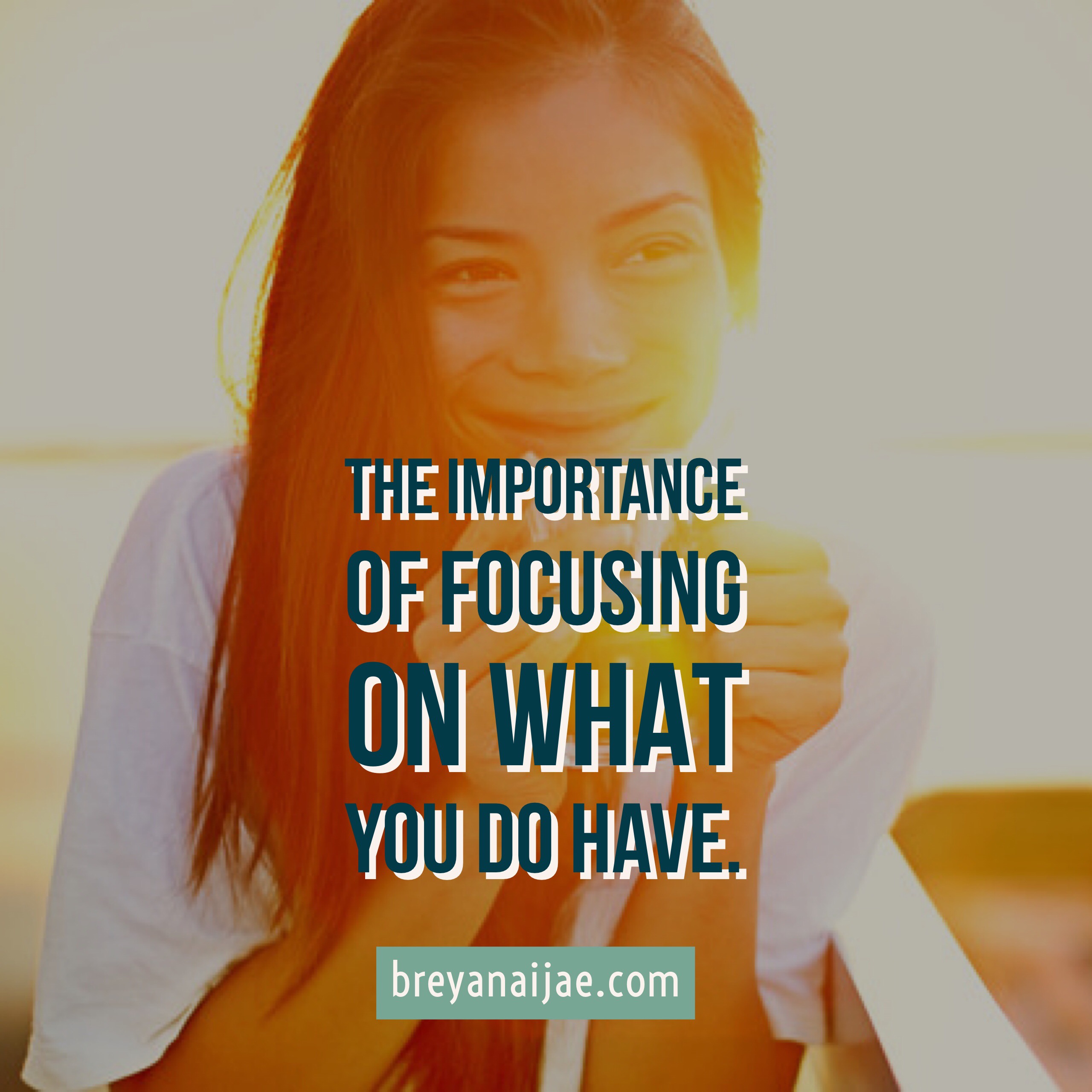 It’s true that we constantly focus on what we don’t have, it’s a habit by nature. Training your mind to only focus on the positive can be difficult but it’s not impossible. If someone gave you a pie with a piece missing and all you could focus on was the fact that it was missing, you would never get to enjoy the rest of it. Take a step back and look at the bigger picture, although you are missing that small piece you still are walking away with a lot more. Focusing on what you want is a sure way to success because it motivates you to get it; it only becomes a problem when you start to focus so much on those wants that you feel discouraged when you don’t get them fast enough. Give yourself a break, give yourself credit, give yourself time. As always, your journey is simply YOUR journey. Stop comparing where you are to where other people are, stop comparing what you have to what other people have. Be content with what’s on your plate and make room for whats to come. Practice patience, practice peace, don’t make excuses for reasons why you can’t focus on what you have. What are you grateful for? What do you appreciate about the things you already have?